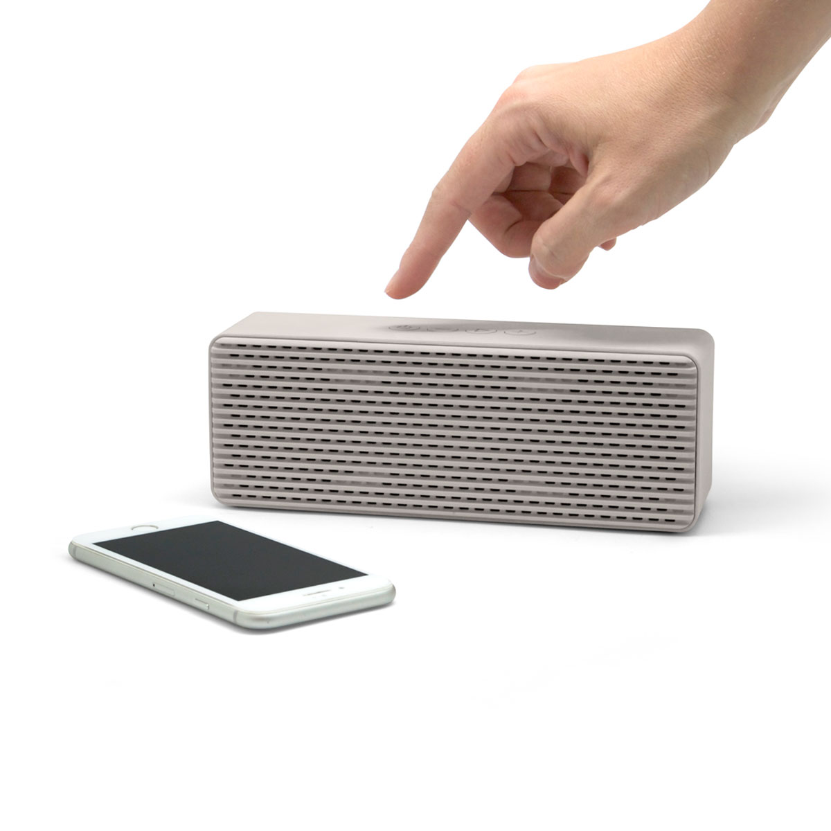 18,7 x 7 x 5,7 cm. Plástico terminación soft touch.Elegante parlante con conexión Bluetooth, entrada de tarjeta TF, entrada auxiliar de 3.5 mm y micrófono integrado para recibir llamadas. Presentación en caja de regalo.