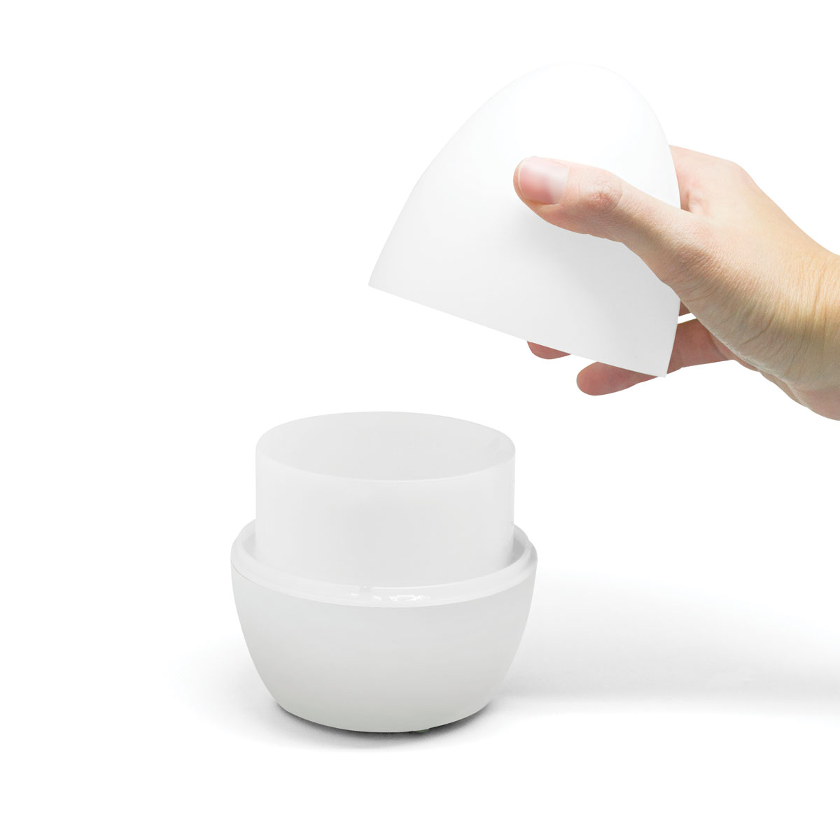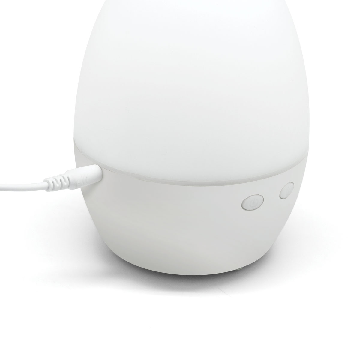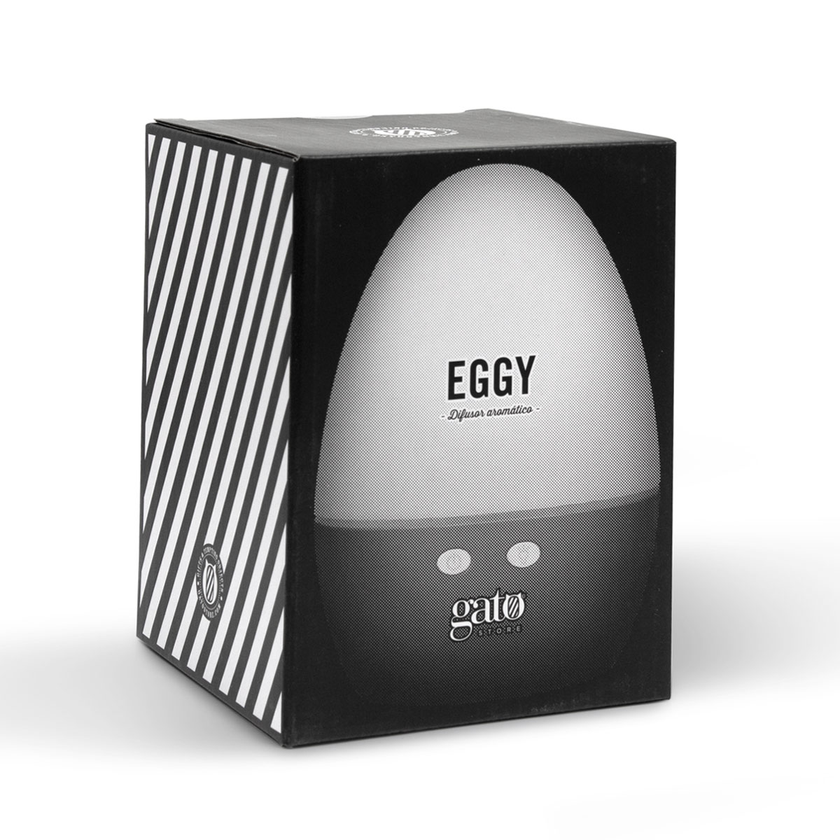 Ø 10,5 x 15 cm. Plástico + Polipropileno. Luz cálida (2 intensidades) y modo fade continuo entre luz tenue y luz fuerte. Difusor de aroma. Eggy tiene una luz tenue y emite un fresco vapor con el aroma de tu esencia favorita. Un placer para los sentidos. Presentación en caja de regalo.