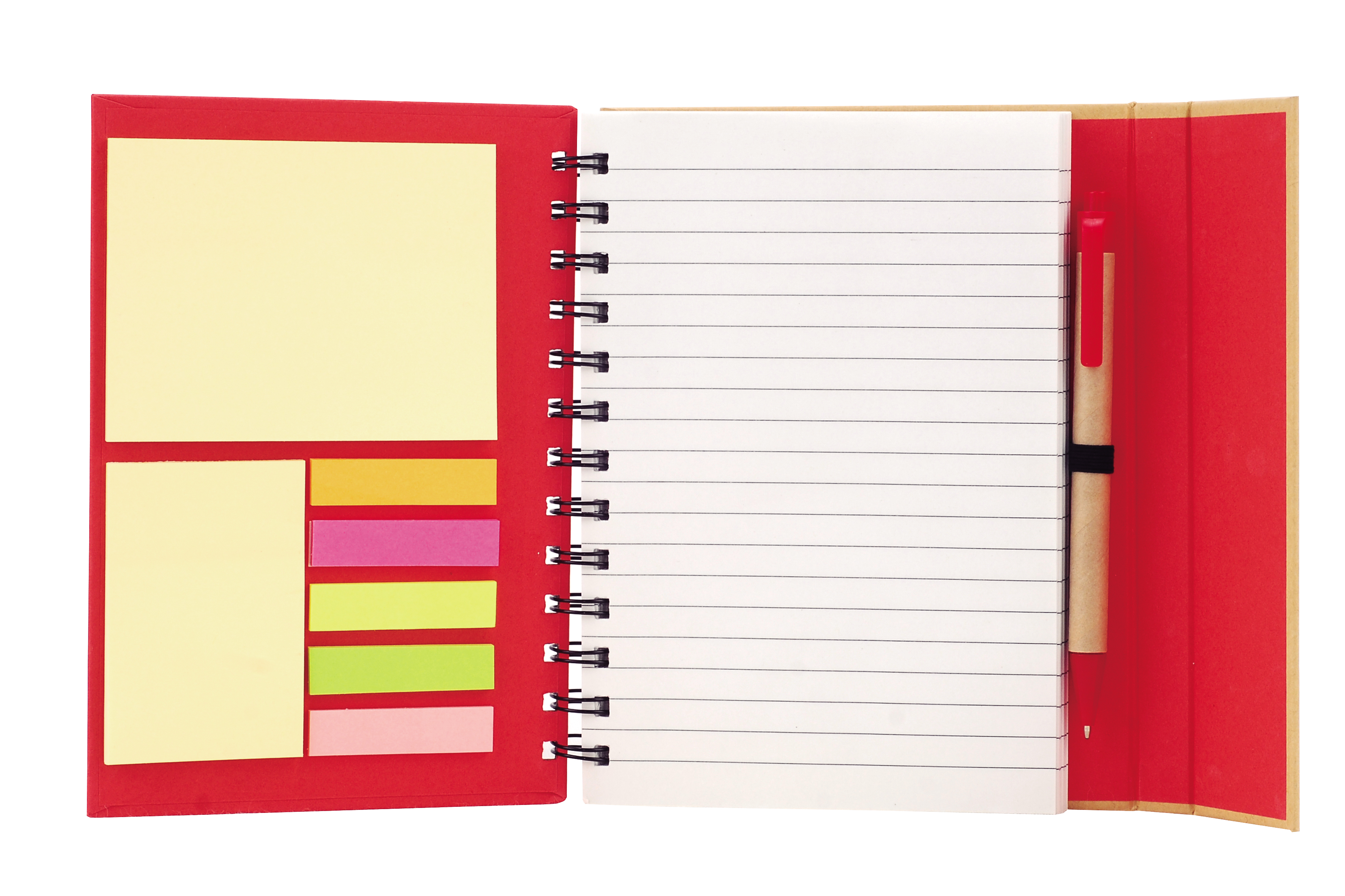 18 x 13.5 x 1 cm. Cuaderno de cartón con espiral. Dos autoadhesivos rectangulares (grande y mediano), cinco autoadhesivos señaladores de diferente color y bolígrafo. 70 hojas rayadas.Cierre imantado.
